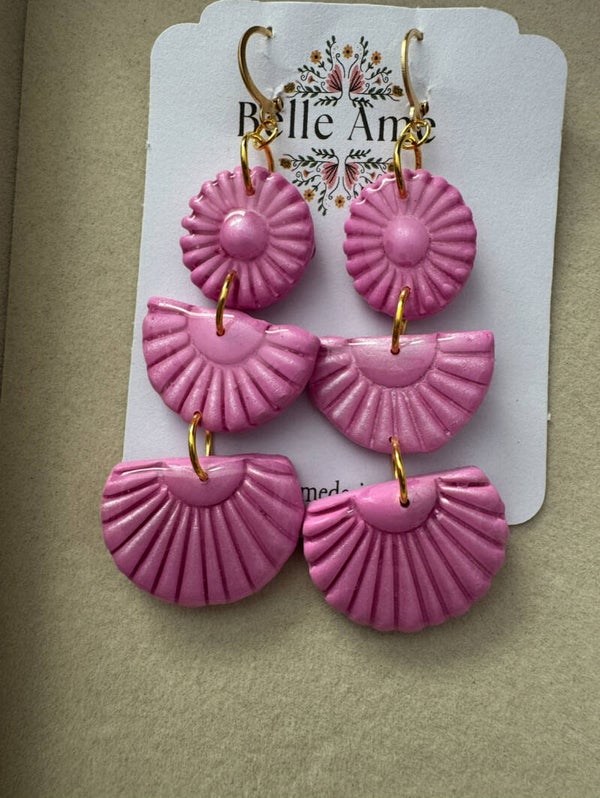 These beautiful Boho styled earrings are sure to make a statement! Stunning pink crafted from polymer clay and finished with a huggie style hoop. They are delicate and lightweight.
